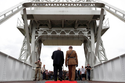 A 00H15, près de mille planeurs chargés de matériel atterrissent tant bien que mal un peu à l’intérieur des terres. Plusieurs se fracassent sur des pieux ou s’écrasent dans les marais, il y a déjà des morts et des blessés. Dans le village de Bénouville, les Britanniques prennent rapidement le contrôle d’un pont levant stratégique qui sera surnommé “Pegasus Bridge”.