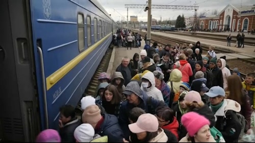 Femmes, enfants, personnes âgées : ils sont plusieurs centaines à tenter de fuir leur ville, en montant à bord de trains bondés. Avec de nouveaux bombardements, qui ont notamment détruit une école, cette grande ville de plus de 150 000 habitants se vide de sa population.