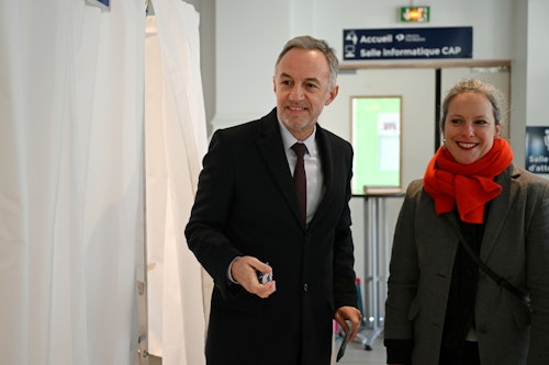 Le socialiste est venu voter en compagnie de Lucie Castets, ex-candidate du NFP à Matignon.