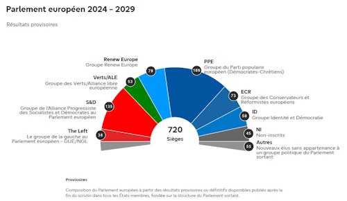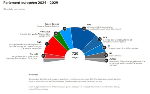 Hormis les pertes importantes du groupe libéral Renew et des Verts, la répartition globale des sièges au Parlement européen reste largement inchangée, malgré des bouleversements majeurs en France et dans d'autres scrutins nationaux.